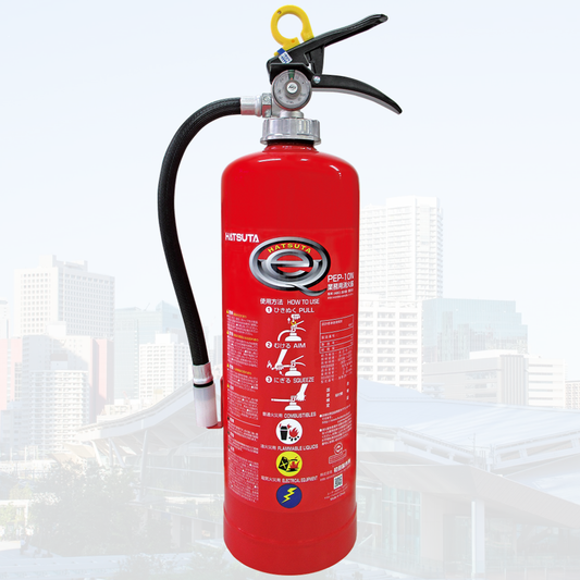 コストパフォーマンスに優れた価格で数量限定販売 初田製作所の蓄圧式粉末タイプ10型消火器PEP-10N(ECOSSシリーズ)は、ビル・マンション管理会社や防災設備会社など、プロフェッショナルな現場で選ばれる信頼性の高い消火器です。安全性と経済性を両立し、多くの法人様にご利用いただいています。この10型消火器は、国家検定に合格した正規品で、ABC火災(普通火災・油火災・電気火災)に対応しています。さらに、スチール製ボディによる高い耐久性と、10年間の長期使用が可能な設計が特長です。価格面でも非常にコストパフォーマンスが高く、まとめ買いをしていただけるお客様には特別価格にてお見積りを作成させていただきます。 製品仕様と性能 メーカー型番種別薬剤質量総質量サイズ容器直径放射時間放射距離使用温度範囲能力単位設計標準使用期限適応火災検定 :初田製作所 (HATSUTA):PEP-10N:ABC粉末蓄圧式10型消火器:3.0kg:約4.8kg:高さ467×幅200×奥行128mm:約120mm:約15秒 (20℃):3〜6m (20℃):-30℃~+40℃:A-3, B-7, C:10年:普通 (A)・油 (B)・電気 (C) 火災:国家検定合格品 10型消火器[PEP-10N]の活用場所 10型消火器は、以下のような防火対策が必要な現場で活用されています。・共同住宅 (マンション、アパート)・ビル・オフィス・事務所・工場・作業場・店舗・商業施設・公共施設 (学校・病院・役所など)高い放射性能と広い対応温度帯により、屋内外問わず設置が可能です。 10型消火器の点検に関するご案内 消防法により、防火対象物の関係者は、設置した10型消火器について定期的に点検し、結果を消防長または消防署長へ報告する義務があります。点検は、防火対象物の種別に応じて、消防設備士または所定の資格者が行う必要があります。10型消火器[PEP-10N]は10年間の設計使用期限を持ち、交換目安としては製造年から10年後が目安となります。適切な点検・交換を行い、万が一の火災に備えます。 お客様の声(レビュー) 多数の法人様より高評価をいただいております。・「見積もり対応が早く、発着もスムーズ。担当者の対応も丁寧で助かっています」・「コストメリットが大きく、ランニングコストが削減できました」・「型式確認や見積対応までスピーディ。安心してリピート購入できます」 ご購入に関するご案内 [送料無料条件]税込 ¥33,000 以上のご注文で送料無料になります(沖縄・離島除く)[まとめ買いによる特別価格]法人様向けにお見積もり対応可能です。お気軽にご相談ください。➤10型消火器[PEP-10N]のお問い合わせ なぜ10型消火器[PEP-10N]が選ばれるのか ・価格の安さと性能の高さの両立・国家検定合格の信頼性・高耐久のスチール製・10年使用可能な長寿命設計・点検・交換も容易な蓄圧式構造 10型消火器[PEP-10N]カタログ